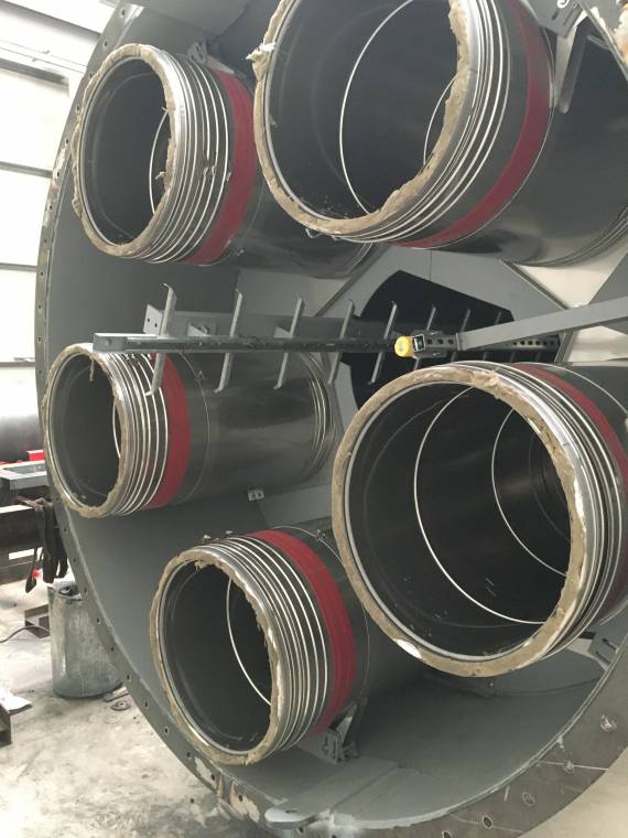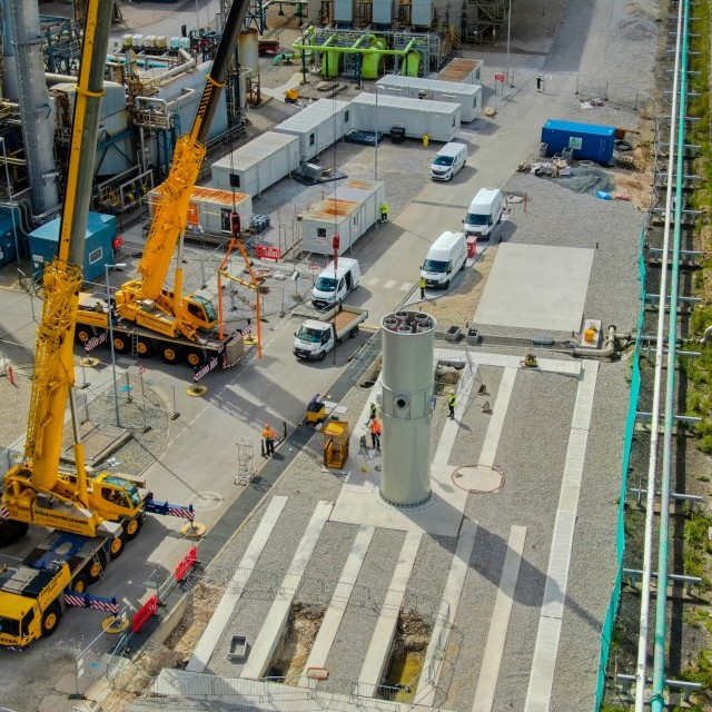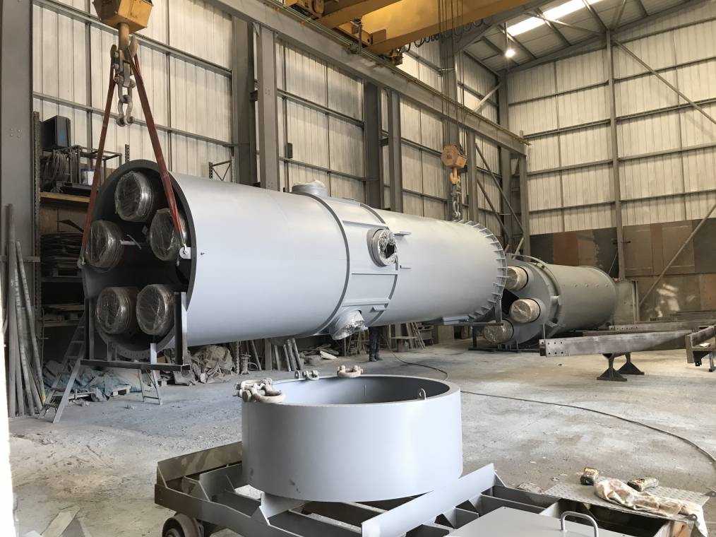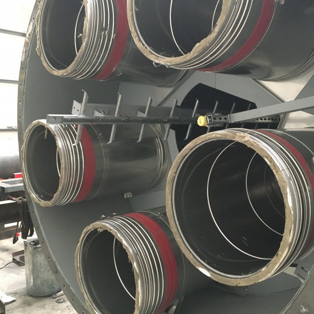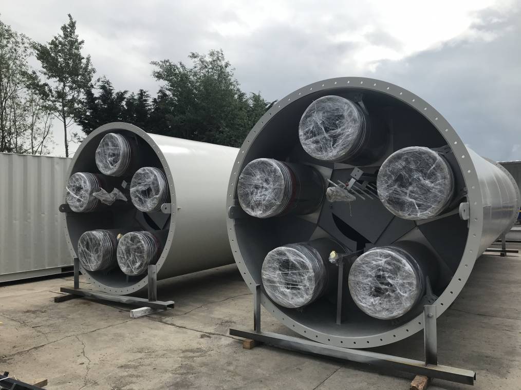 In phase 1 a 40 metre high free standing multi core chimney was installed which incorporated 5 No 600mm ID stainless steel twin wall insulated exhaust systems. In phase 2 the exhausts were installed from the chimney back to the generators.