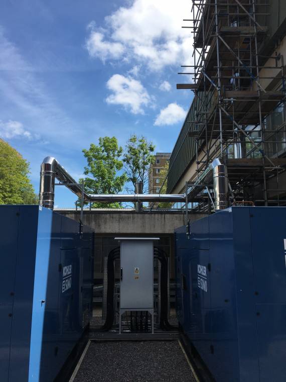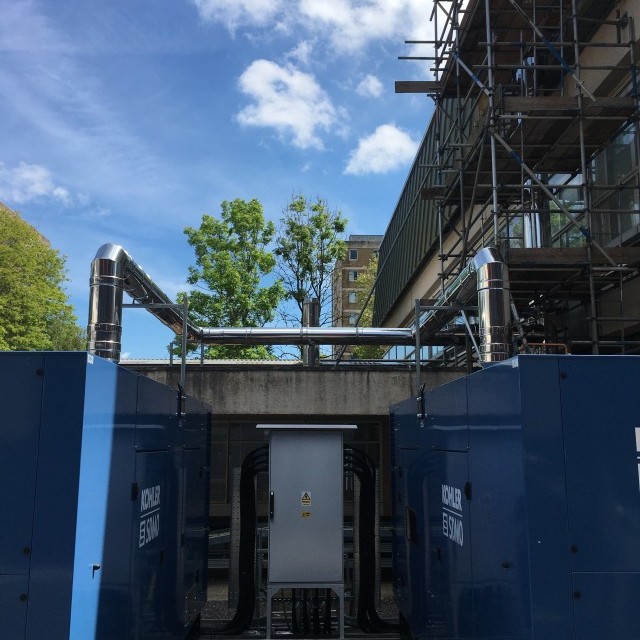 Two backup generators supplying back-up power in case of a power outage at an NHS hospital in Cardiff.